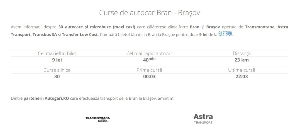 Pentru a ajunge în Bran din Brașov cu transportul în comun, cea mai simplă variantă este să iei un autobuz sau microbuz din autogara Brașov 2.