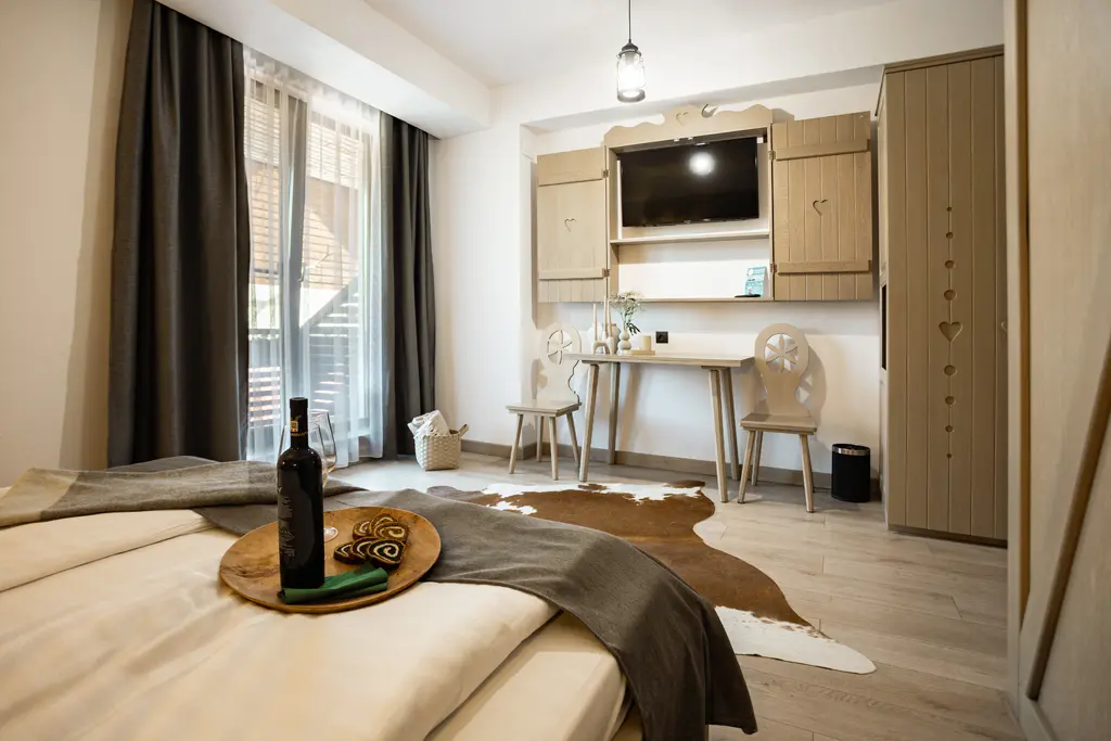 Această cameră este un refugiu intim pentru 2-3 persoane, perfect pentru cupluri sau familii restrânse. Atmosferă caldă, vedere spre munte și liniște deplină în inima naturii.